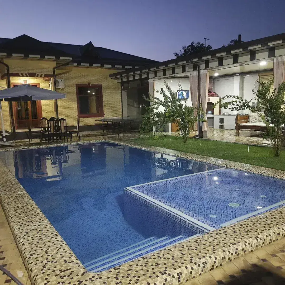 Uyut dacha dachasi Chorvoq hududida, Qoronqulda joylashgan. 10 kishi uchun qulayliklari bor, 3 ta Yotoqxonasi bor. Dacha Oila va Erkaklar kallektivi uchun mo'ljallangan. Alkagol mumkin. Ayollar kallektivi, Korporativ va Uy hayvonlari mumkin emas. Mijozlarga qulaylik keltirish maqsadida: Finskaya saunasi, O‘yin pristavkasi, Karaoke, WI-FI, Stol tennisi, Yozgi oshxona, Barbekyu, Mangal, Bilyard, Isitiladigan qishgi basseyn va Yozgi basseyn kabi qo'shimcha qulayliklar mavjud. Hovlida Tapchan va Stol Stul bor. Tapchan qarshisida Televizor o'rnatilgan.